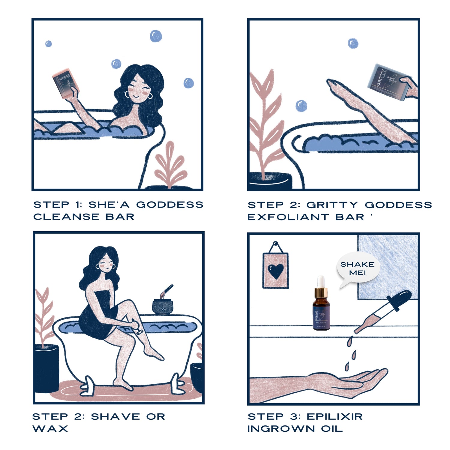 Use our She'a Goddess Daily Cleanse and Grit Rit of It Bars to provide gentle exfoliation and glowing skin.